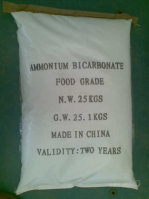 产品描述:白色结晶状粉末,有轻微的氨味,溶于水后为碱性溶液产品名称:碳酸氢铵分子式:NH4HCO3CAS NO.:1066-33-7含量:99.2%min食品级,工业级包装:塑编袋、牛皮纸袋,25公斤净重/包应用:高级食品发酵剂。与小苏打一起用于面包,饼干,煎饼等发酵,也用于发泡果汁的原料。也用于绿色蔬菜,竹笋等的烫漂,以及医药和试剂。